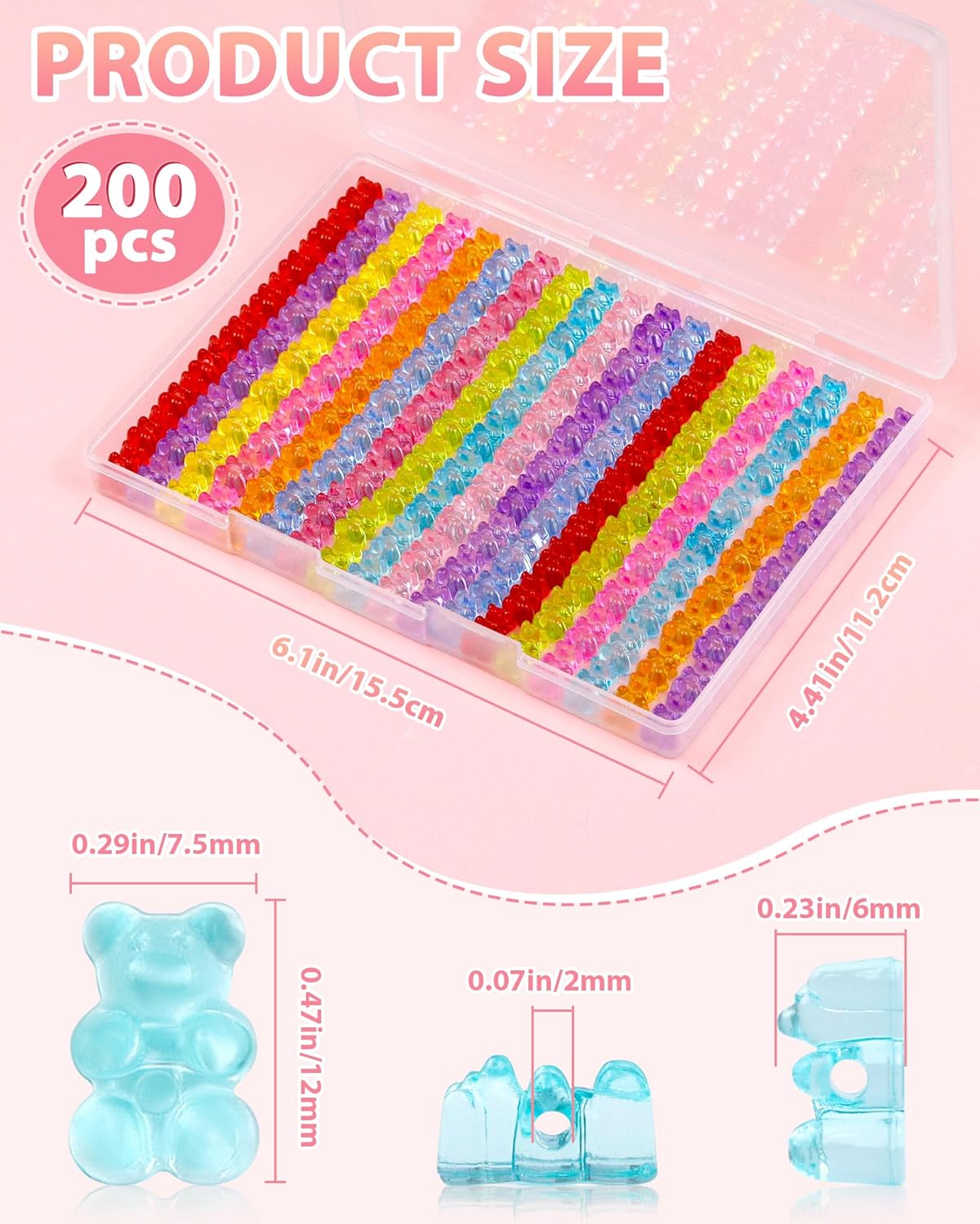 •  Includes 200pcs gummy bear beads, each measuring 12×7.5x6mm with a 2mm hole. The ideal size for crafting bracelets, necklaces, earrings, and more.