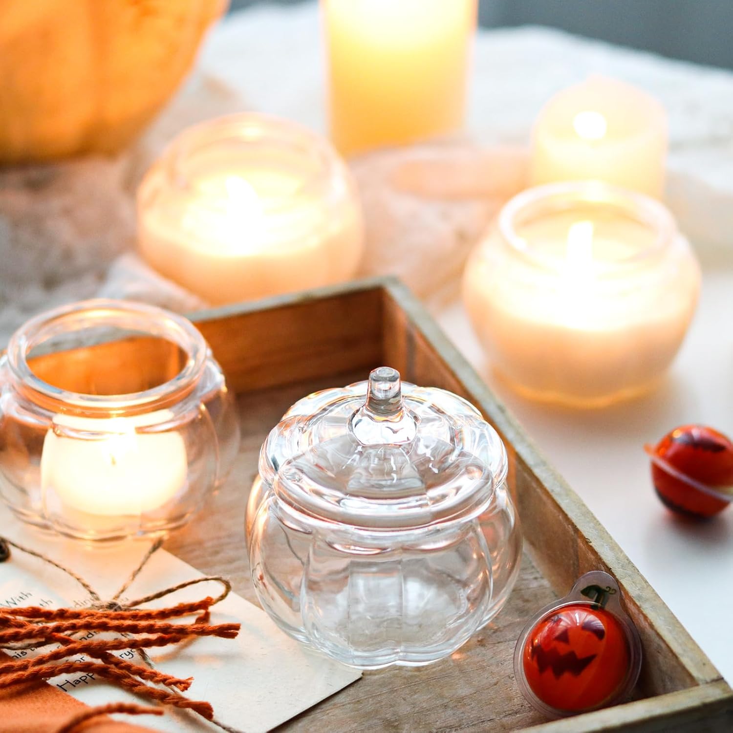 - Glass Pumpkin Candle Jars: Made from high-quality glass, these small candle glass jars provide a lifelike pumpkin look that enhances the aesthetic of your candles. Each clear candle jar is crafted to ensure durability and withstand the heat of melted wax, making them ideal jars for candle making. These sturdy and reliable pumpkin jars with lids are designed to be reused, providing long-lasting value for your candle-making endeavors