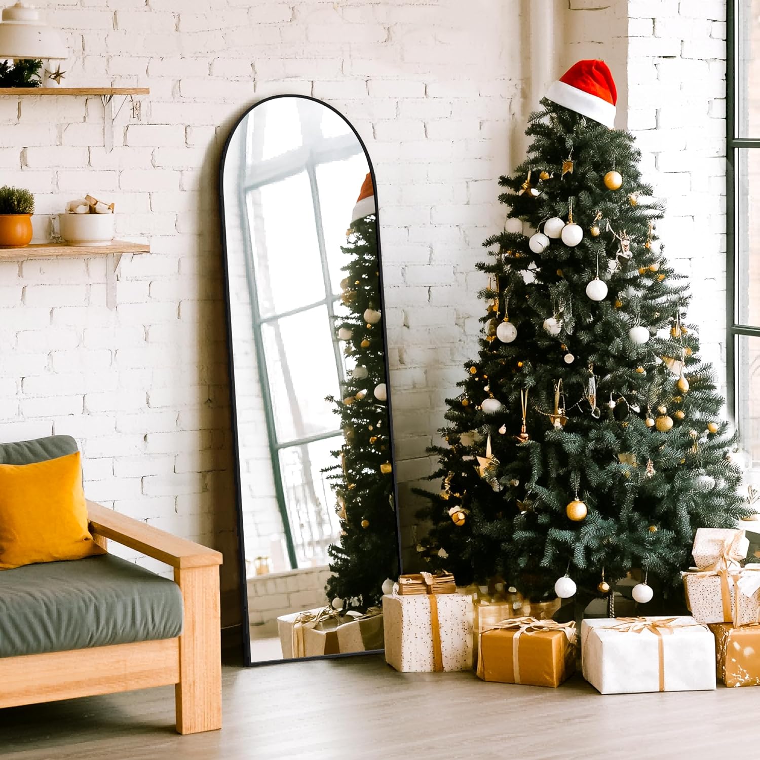 • UNIQUE DESIGN: Arched mirror’s stand can be completely hidden on the back, when hung on the wall. And floor mirror has an explosion proof design on the black backboard to prevent splinters and make the mirror safer.