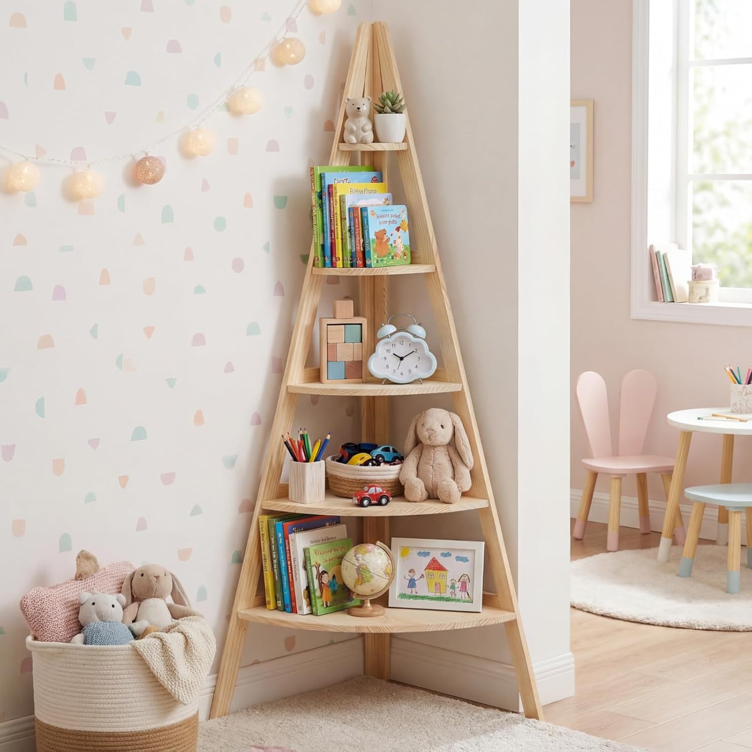 • Easy to Install: the wooden corner shelf stand is already perforated, easy to assemble and equipped with screws for quick and hassle-free setup; Once assembled, this corner bookshelf stands securely on its own, providing a stable platform for your items; And the compact size of this Christmas tree bookshelf means it can be placed in any corner of your home without taking up too much space