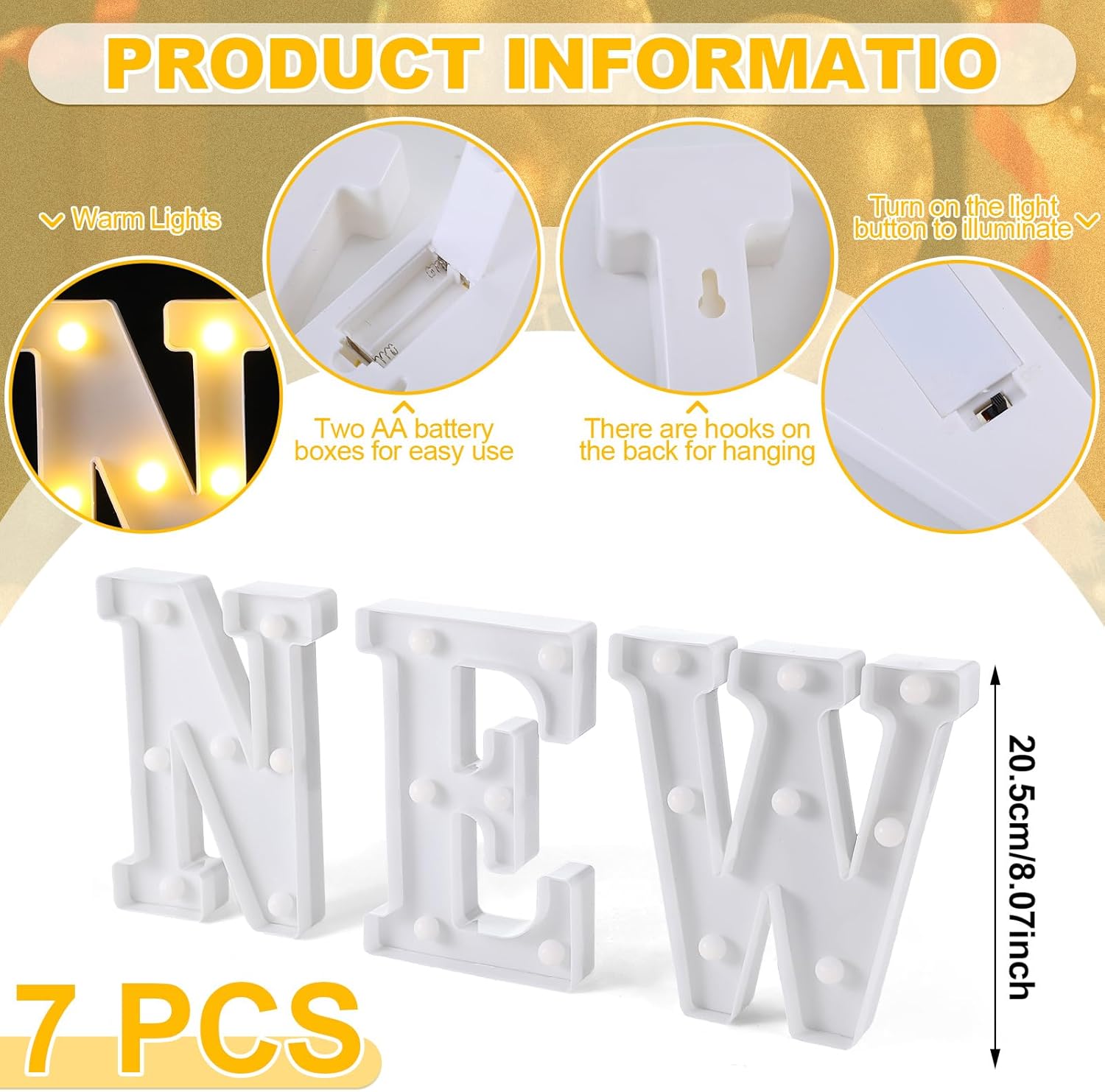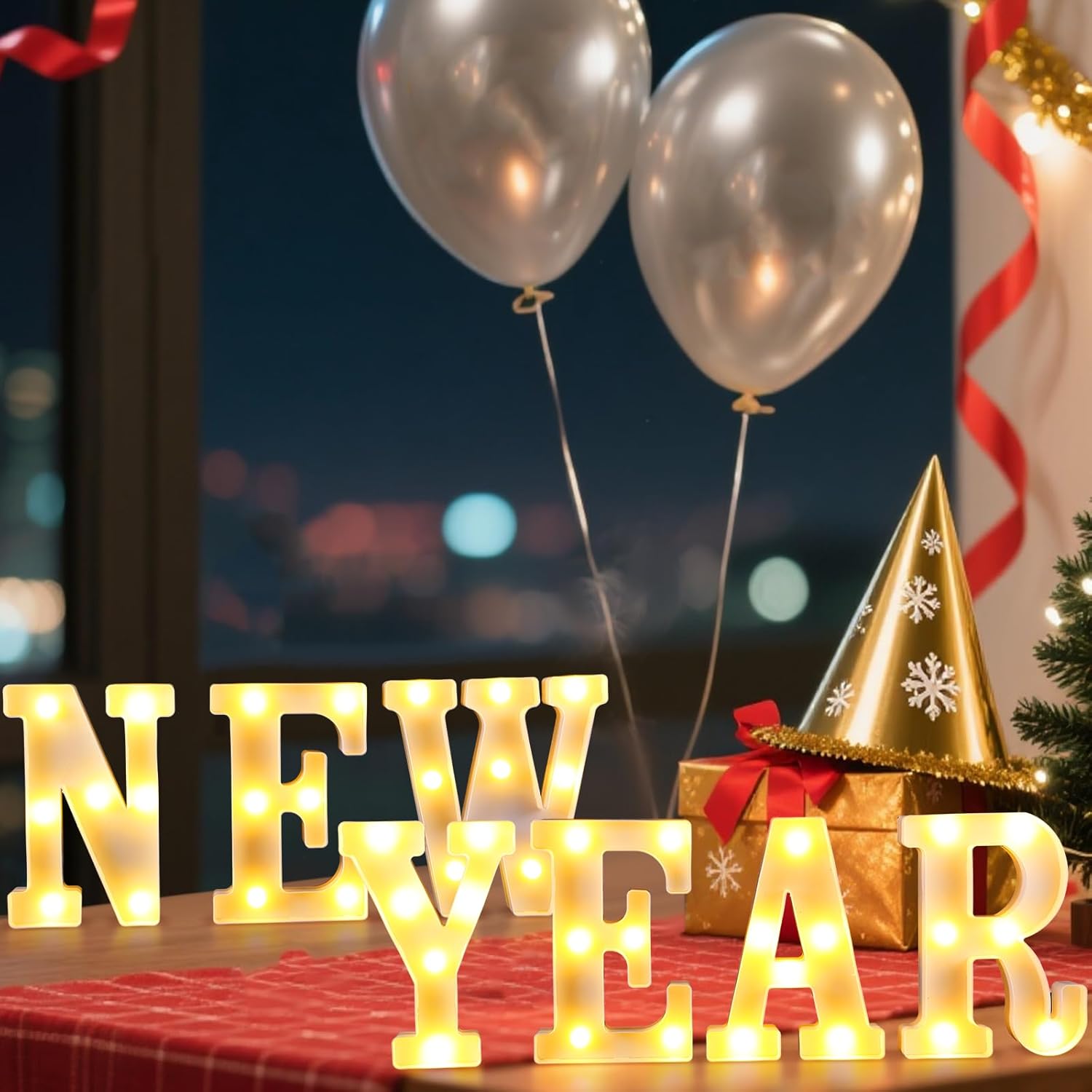 - Bring the Spirit of the Festival to Your Home: with the set of LED new year decorations for home, you can add an intricate charm to your space; Transform your home during new year festivities by having these beautifully designed light up letters as table decorations; They are white when not lit and transform into glow when turned on, bringing the festive spirit into your home