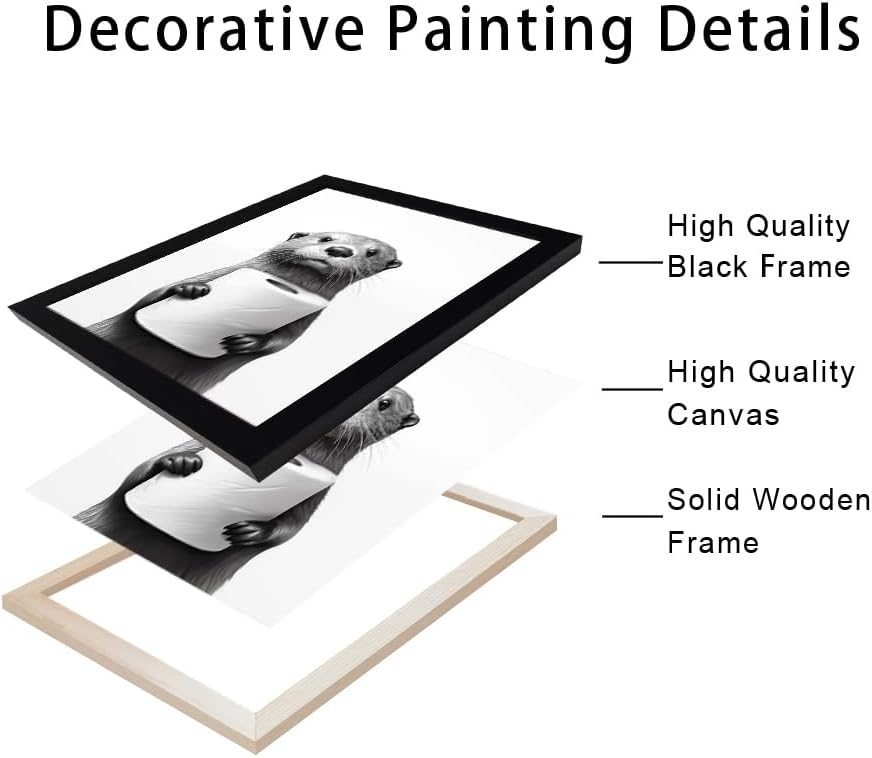 - 【High resolution】High resolution black and white bathroom wall art, HD pictures photo printed on high quality canvas with vivid color. UV-resistant inks, anti-fading and toxic-free canvas, high definition animal canvas print artwork.