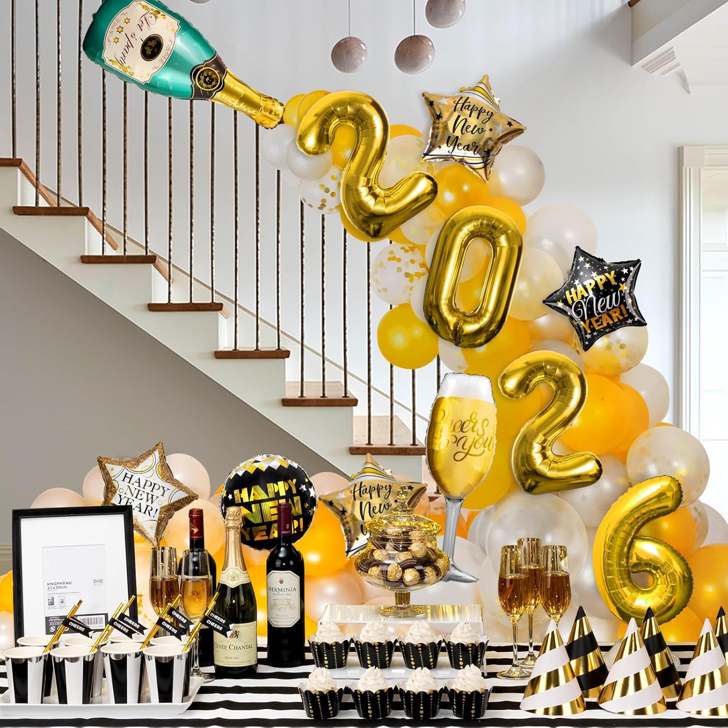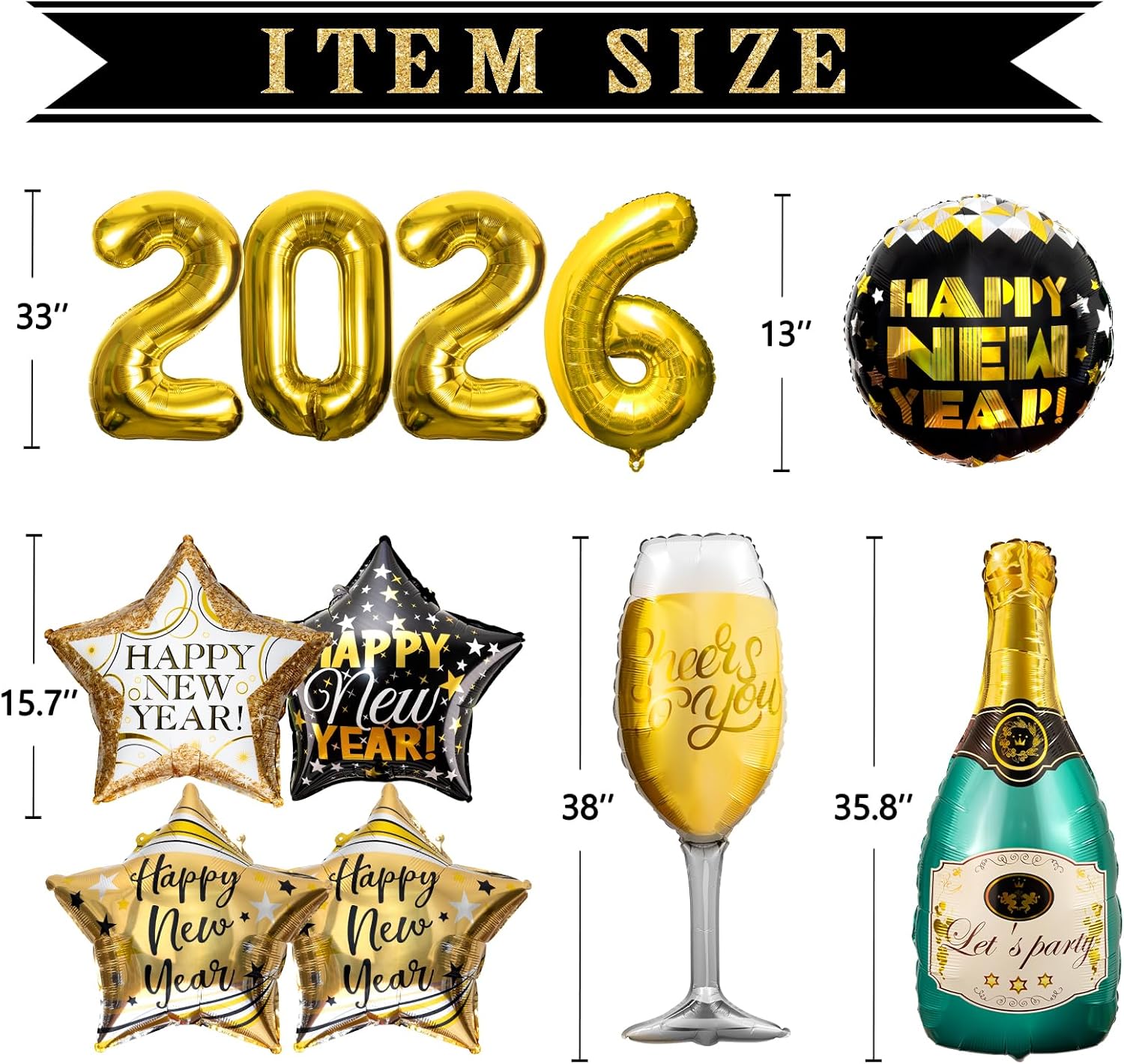 - ✔EVERYTHING YOU HAVE – New years eve balloons set includes 11 Foil Balloon (4 Styles), 1 Round Balloon, 4 Star Balloon, 1 Beer Foil Balloon, 1 wine bottle 2026 Foil Balloon.