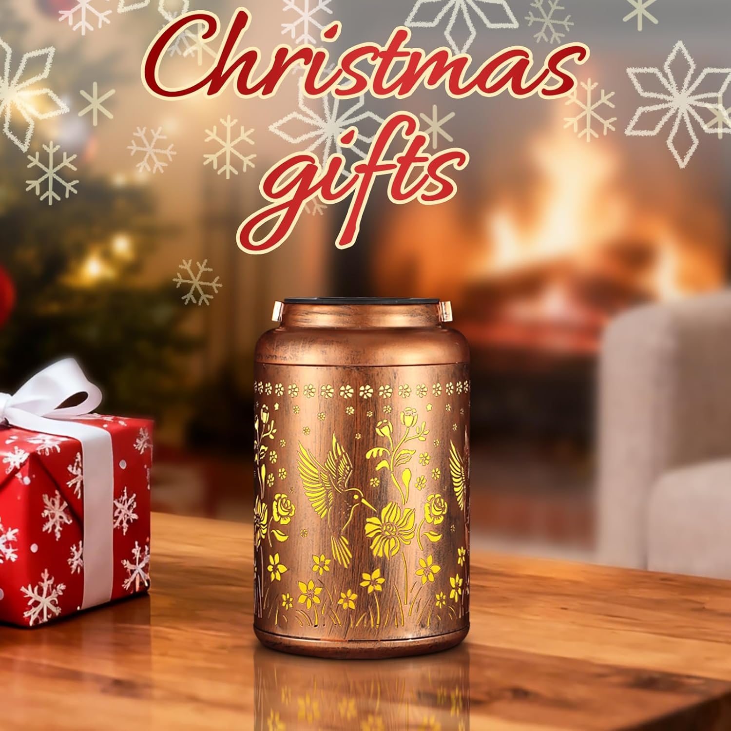 • Graceful Decorative Design:The retro appearance, with gold copper color and hollow out metal veneer, the solar outdoor lanterns casts bright and warm light in darkness, accompanied by gorgeous and graceful hummingbird patterns, adding a beautiful atmosphere to the surrounding environment.