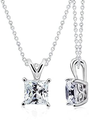 - Cable-chain necklace with princess brilliant cut Infinite Elements Cubic Zirconia solitaire stone, set in platinum plated sterling silver four-prong basket